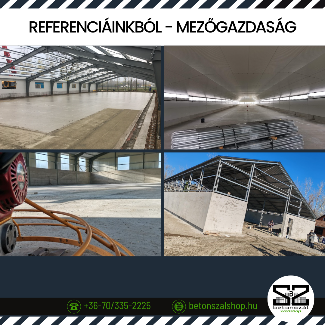 Felhasználási területek:- Állattartó telepek korszerűsítése- Istálló padlók és trágyatárolók betonozása- Magtárolók és takarmánytárolók kivitelezése- Szárítók és vetőmagüzemek betonszerkezetei